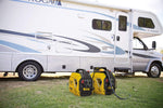 Including two covered 120V 20A household outlets (5-20R) and a covered 12V DC automotive-style outlet, this inverter operates at 53 dBA from 23 feet – about the same noise level as a dishwasher running in the next room.