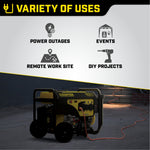 The Champion Power Equipment 100814 7500-Watt Portable Generator is designed with your safety and convenience in mind. A cost-effective solution that delivers power and peace of mind, this generator will provide all the backup power you need for power outages and emergencies. For projects, the 420cc Champion single-cylinder OHV engine has what it takes to handle the multiple power tools and large equipment you need to get the job done.