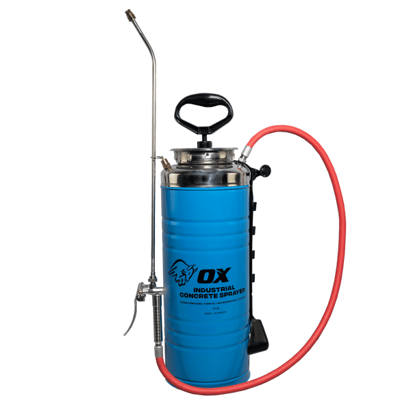 Built with the tradesman in mind, the OX Pro 3.5 Gallon Concrete Sprayer is designed for professional concrete applications. The sprayer comes equipped with a heavy-duty stainless steel 3.5 Gallon tank. The tank comes with pOXy coating which provides protection against rust, corrosion, and dents. The tank is suitable for numerous varieties of chemicals and can be cleaned out given the wide 4-inch mouth of the tank. The pressure relief valve on the tank allows you to safely remove internal pressure prior to opening the tank. While the pump handle on the tank allows you to easily twist and lock your unit to tightly seal the pump into the tank. The unit also includes a 55-inch chemical resistant hose and a 24-inch steel spraying wand. The wand includes a chemical resistant brass fan-tip nozzle that has a 1/16-inch tip opening. The tank is also equipped with a wand and nozzle storage holster for convenient carrying and secure storage. This unit also includes a pair of OX gloves. Overall, the OX Concrete Sprayer is designed to take on the toughest jobsites and is made for professional contractor use.